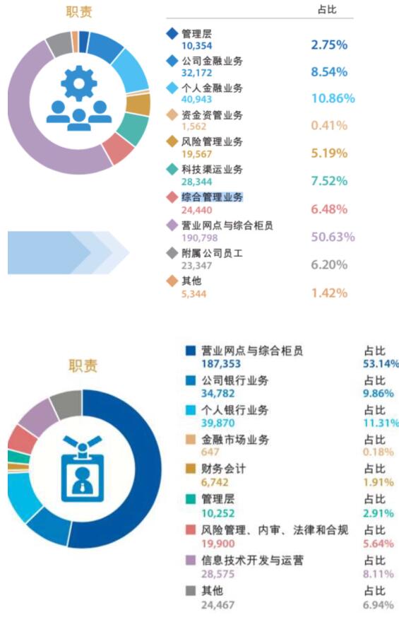工商银行员工人数也超过40万人,达41.93万人。建设银行、中国银行、邮储银行分别为37.69万人、30.69万人和19.71万人,而交通银行人数最少,为9.43万人。