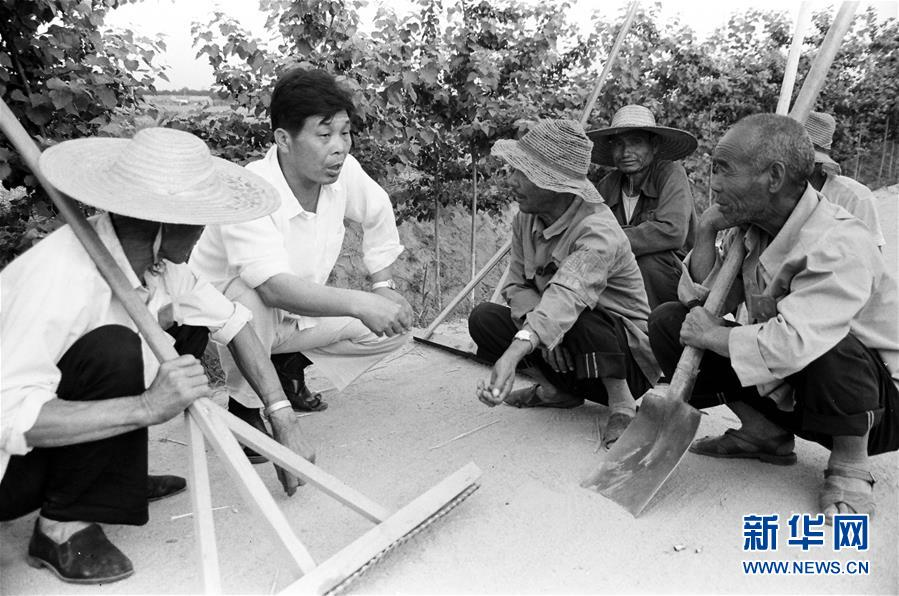 王伯祥(左二)向农民了解情况(资料照片 来源:新华网)